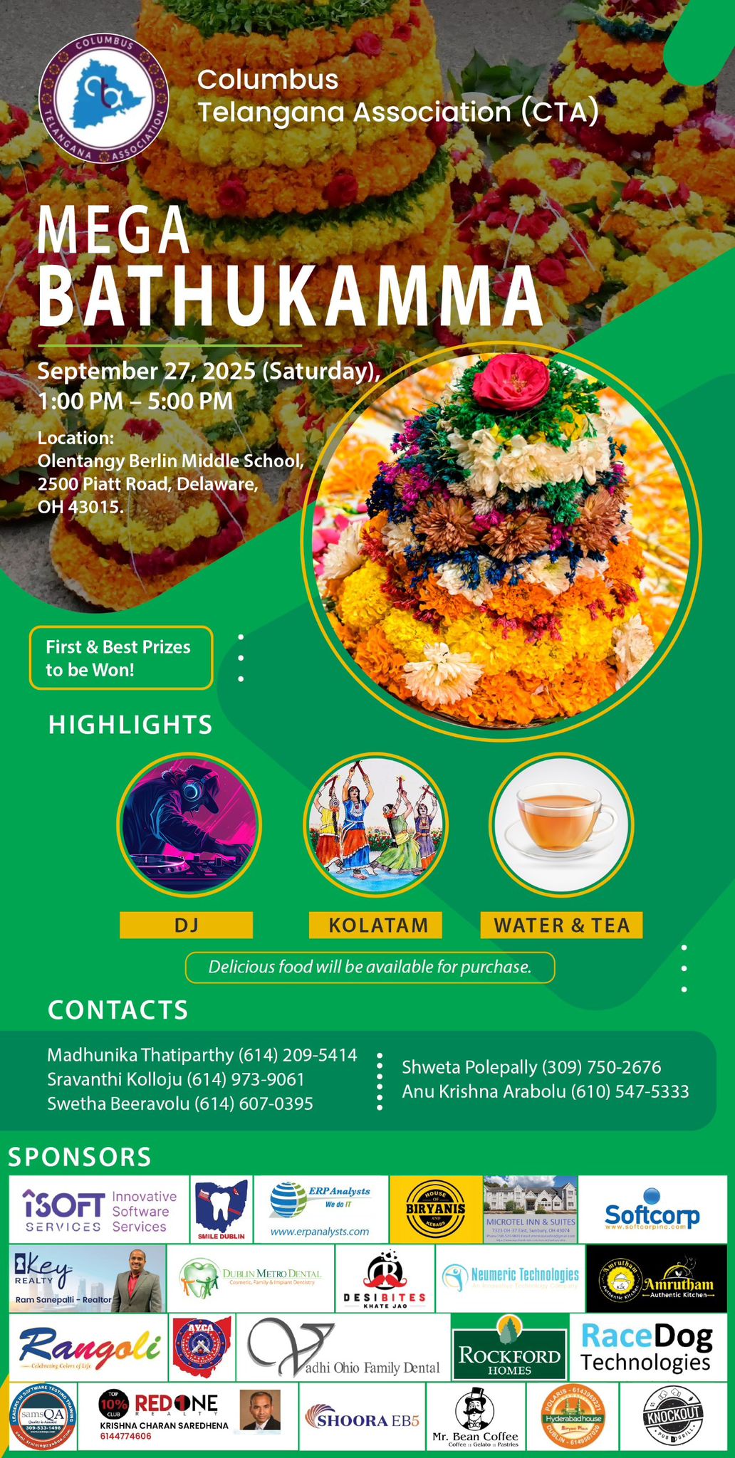 CTA is a non-profit and an Ohio-based Organization, founded in 2009, with a small group of individuals and families. CTA has grown significantly in a short period and is now one of the biggest organizations in Ohio. Our signature event Telanganam is becoming more popular every year. We request you to become a member, enjoy the benefits, and support CTA.